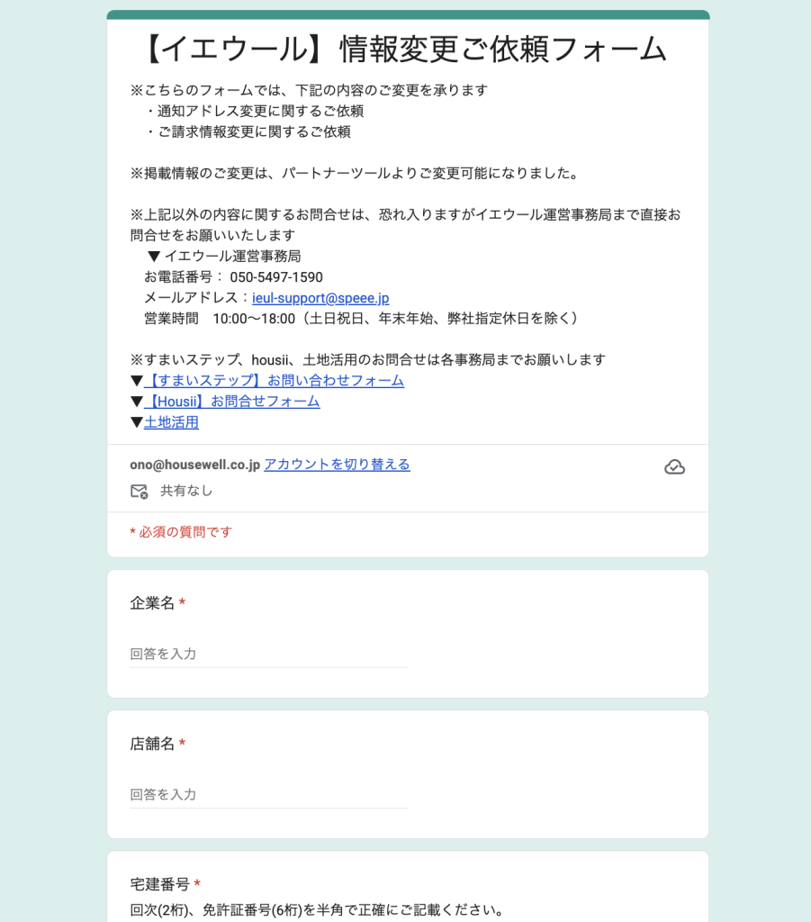 イエウールへの反響通知先追加依頼について