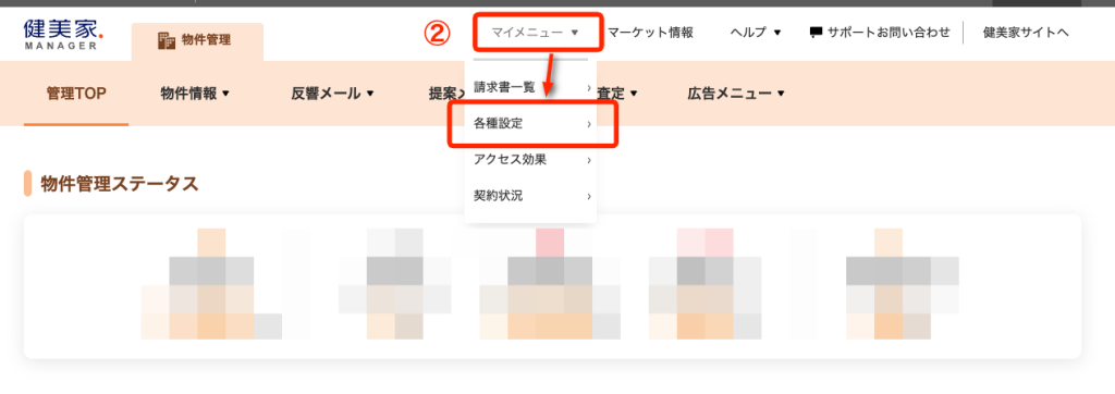 ①健美家管理ページにログインしてください。