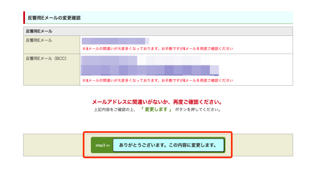 ③内容を確認し、「この内容に変更します。」をクリック