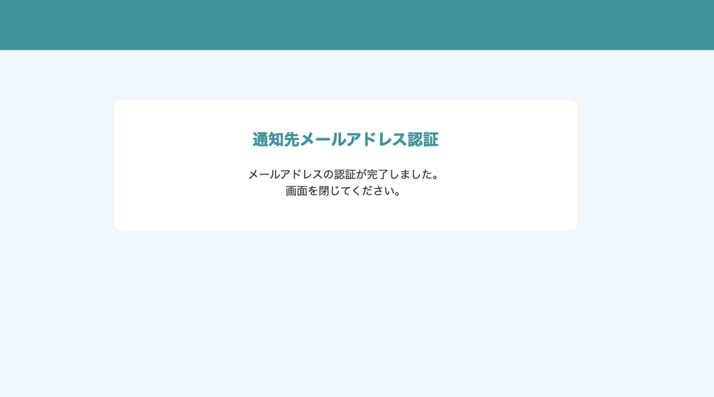 ②リンク先で「メールアドレスの認証が完了しました。」の表記が確認できたら、反響の転送設定は完了です。